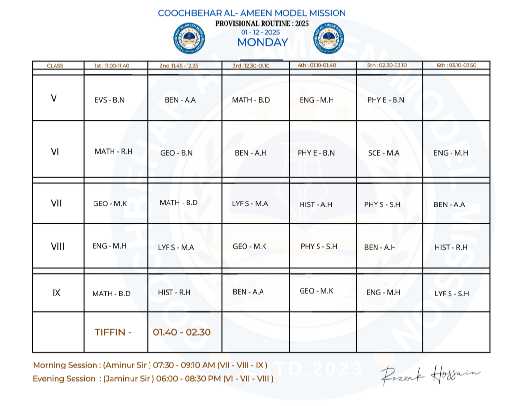 Education is the foundation upon which a strong and progressive society is built. With this vision, Coochbehar Al-Ameen Model Mission began its journey with the aim of providing quality education, discipline, and moral values to students from all backgrounds. Our mission has always been to ensure that every child—regardless of their financial or social condition—gets the opportunity to learn, grow, and build a better future. Over the years, our institution has steadily evolved, expanding its academic standards, residential facilities, and co-curricular activities. Today, we proudly serve as a trusted educational home where students are nurtured with care, guided with discipline, and empowered with knowledge. Our dedicated teachers, staff, and well-wishers have been the pillars of this continuous progress. We believe that education is not just about books and examinations—it is about shaping character, building confidence, and preparing young minds for the challenges of tomorrow. With humility and gratitude, we acknowledge the support of parents and guardians who have placed their faith in us. As we move forward, our commitment remains the same: to inspire excellence, uphold moral values, and create responsible citizens for the nation. With the Almighty’s blessings, we strive each day to achieve this goal. Warm regards,